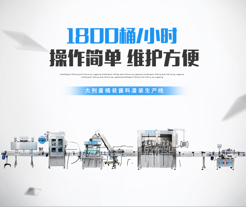 一. 醬料灌裝機生產線適用于粘流體中帶小顆粒并且可流動的較為粘稠的物料,可灌裝容量為3kg/桶,灌裝速度高達1200-1800桶/小時.